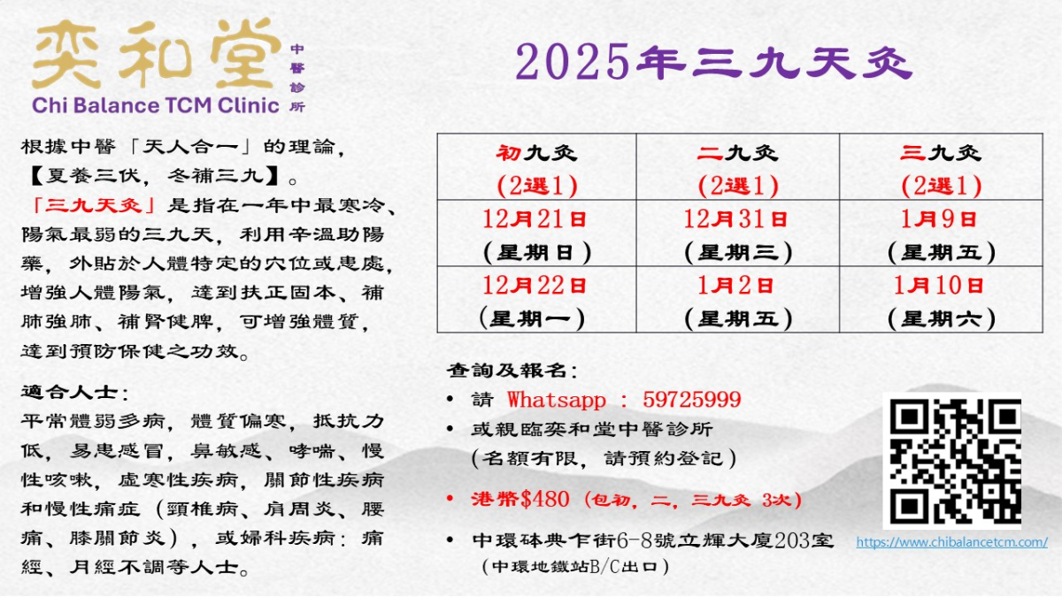 「奕和堂」除了傳統診治,冀幫病人建立東方的健康生活方式,符合自然之道,順應四時,針對個人的體質而實施個性化的養生,將食療,氣功及養生文化等融入日常生活中,尋回更高的大健康:內調外治,內外兼修,修身養性,從而達至身心安康,延年益壽與幸福吉祥。